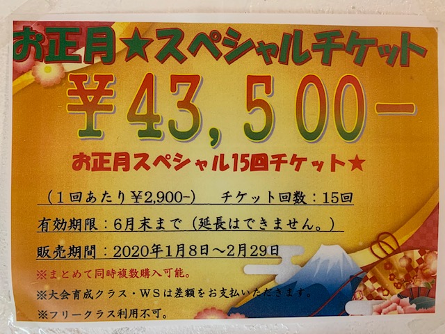 お正月スペシャルチケット発売中!! 2020.01.28 1/8~2/29の期間中、 お正月スペシャルチケットを販売しております!! 有効期限は、6/30まで(^^)/ 1回2900円相当、大変お得なチケットとなります!! 是非、ご利用下さいませ(*^^)v ポールダンス|東京六本木、中目黒、品川、銀座にあるポールダンススタジオPolish